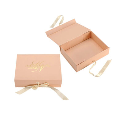 Luxury Magnetic Closure Matt Lamination Folding Paper Gift Box with Satin Ribbon