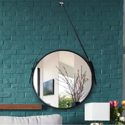 Round hanging wall mirror with PU leather strap