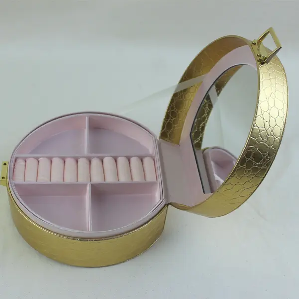 In addtion,the shape of this mini jewelry box is round, which is different from other jewelry boxes, this distinctive design makes the jewelry box look more fashionable.