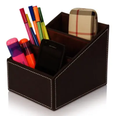 Meanwhile,with 4 divided compartments to organize your writing instruments, cellphone, remote control, change, business cards, and other office supplies.