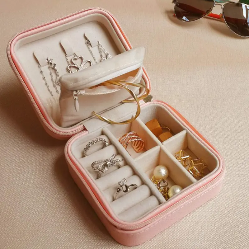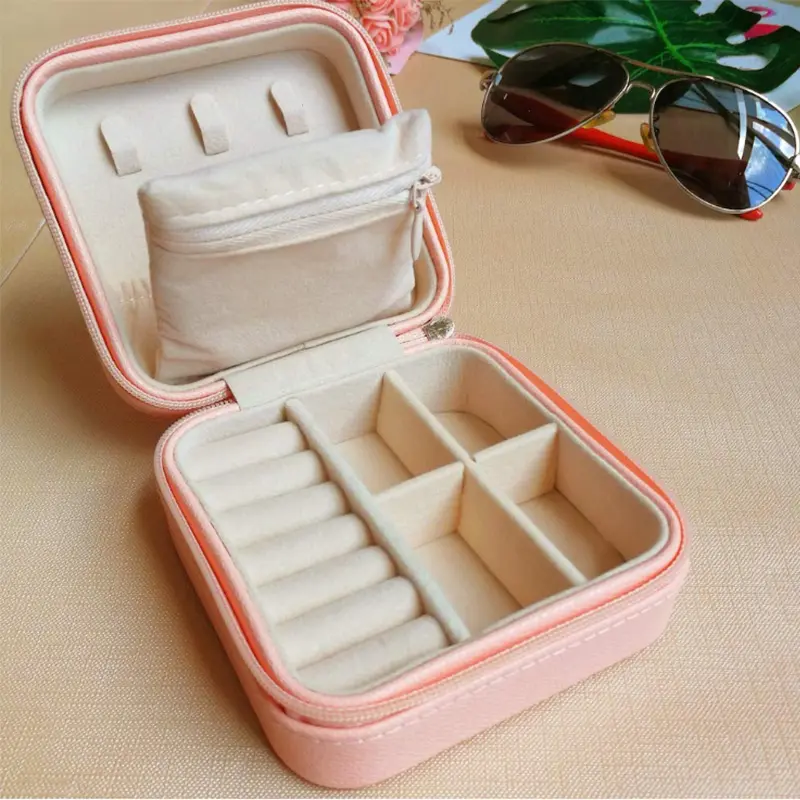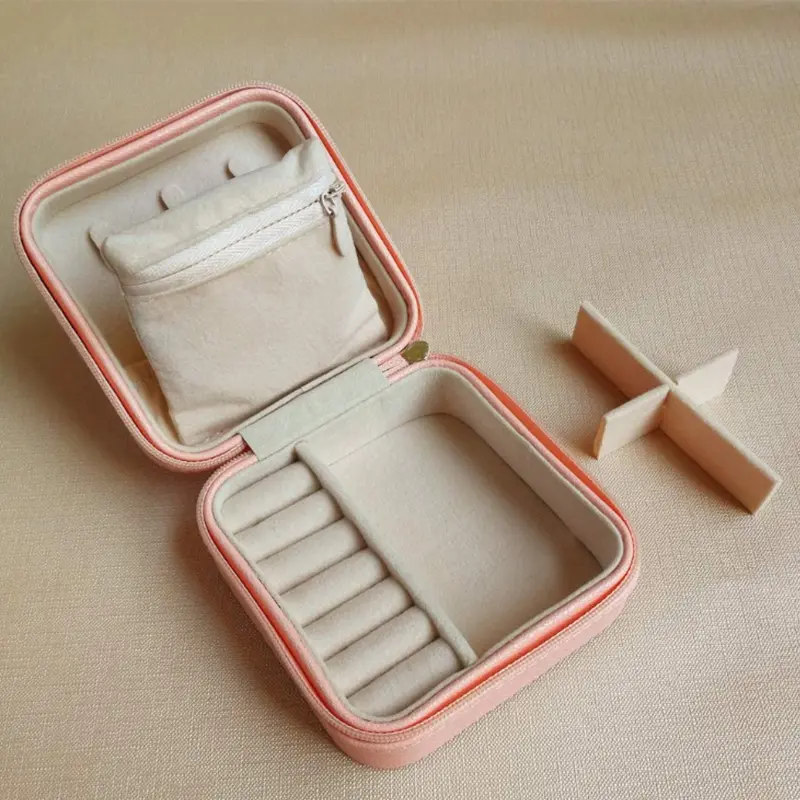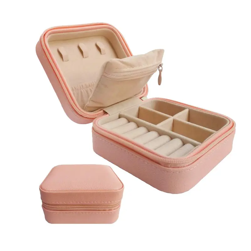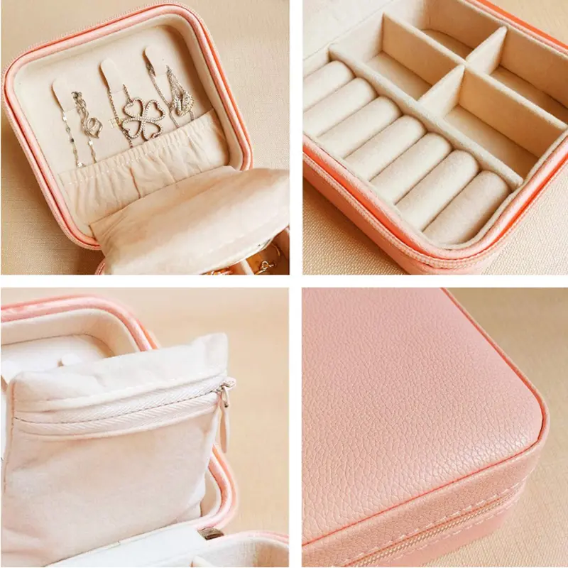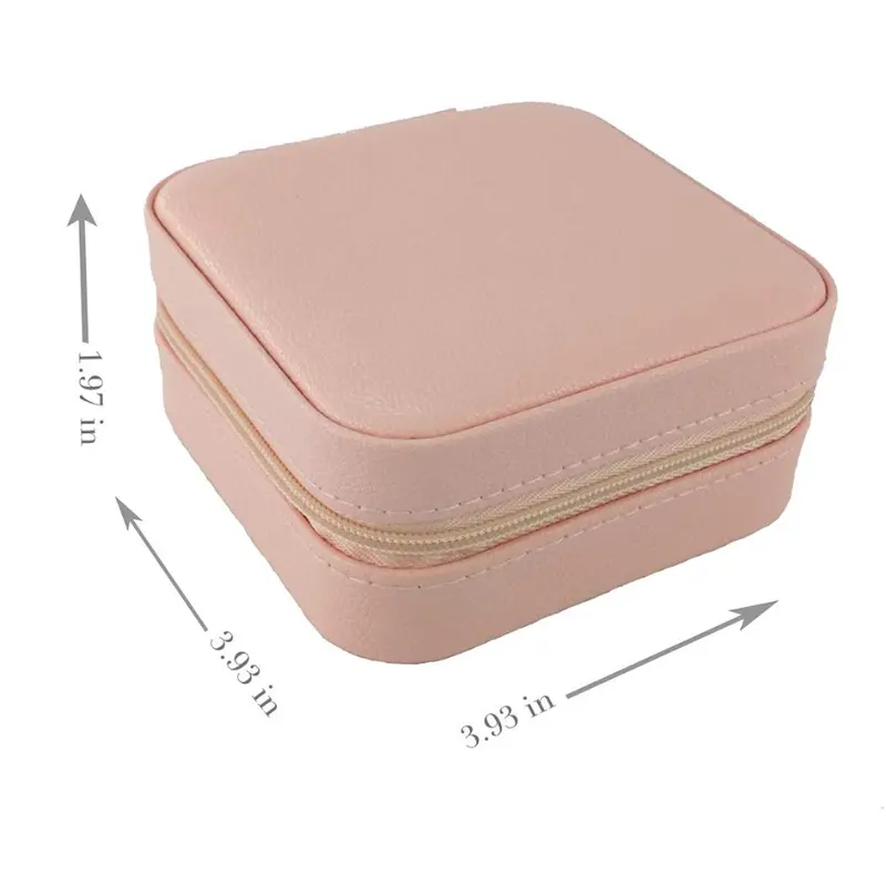 Pink leatherette travel Jewelry box Organizer Display Case with zipper