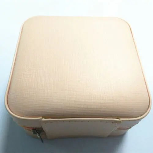 Pink leatherette travel Jewelry box Organizer Display Case with zipper